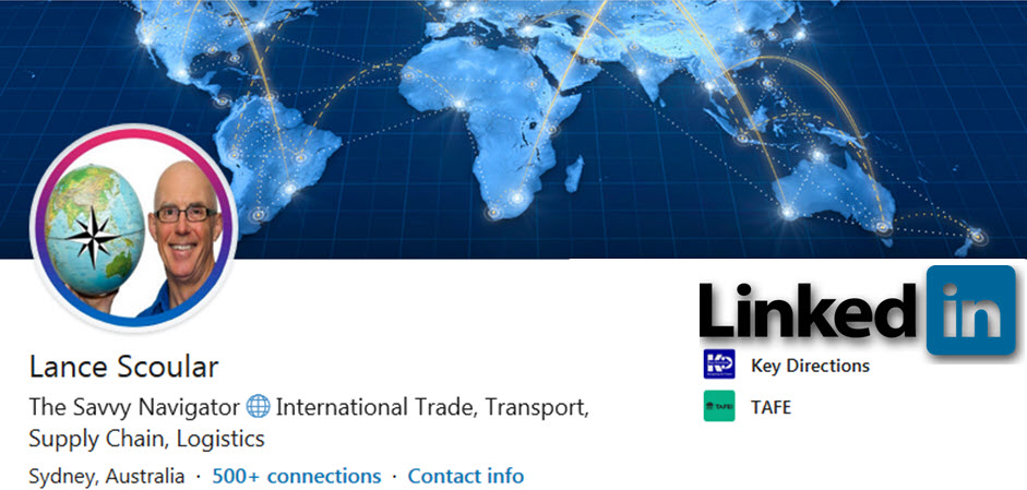 Hi Ho, I’m Lance Scoular, The Savvy Navigator, and this is a snapshot of my career in international trade, which I commenced in 1968. I have gained experience and expertise through a diverse range of organizations: multinational companies (3M Company & Baxter Healthcare); directorships with companies in the areas of freight forwarding, customs brokerage, international sales and marketing; working with and for industry peak bodies; and Government Organisations.
